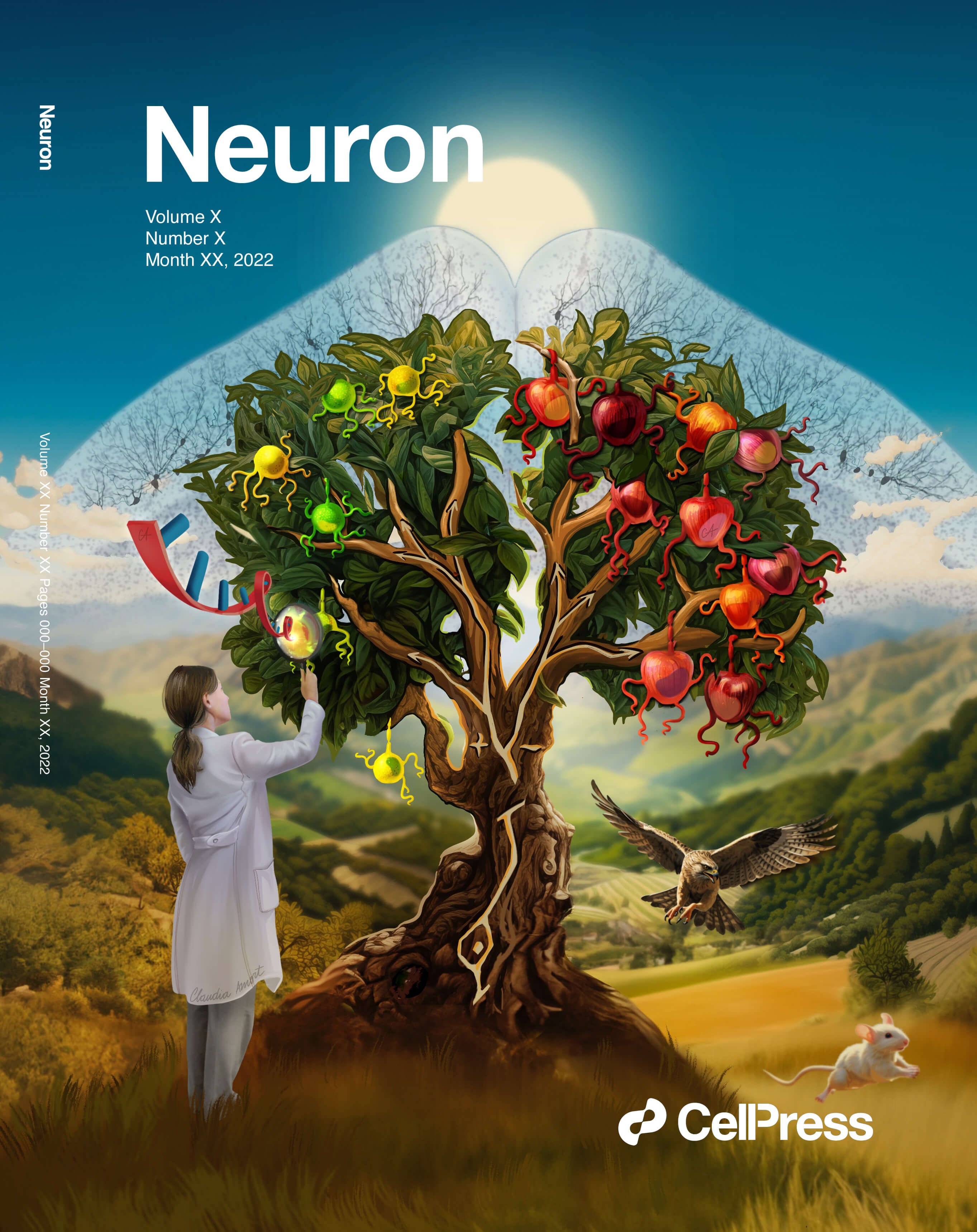 Titelbild für das Wissenschaftsmagazin “Neuron” des ISTA – Institute for science and technology Austria zur Differenzierung von Neuronen im Superior Colliculus
