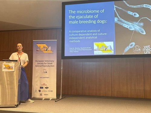 One presentation was given by Lisa M. Ahrens, a doctoral student at the Clincal Center for Reproduction and associated with the Vetmeduni One Health PhD programme, titled "Mycoplasmas in Dog Breeding: A Comparison of Culture-Based and Culture-Independent Methods for Detecting Mycoplasmas in the Semen of Healthy Stud Dogs."