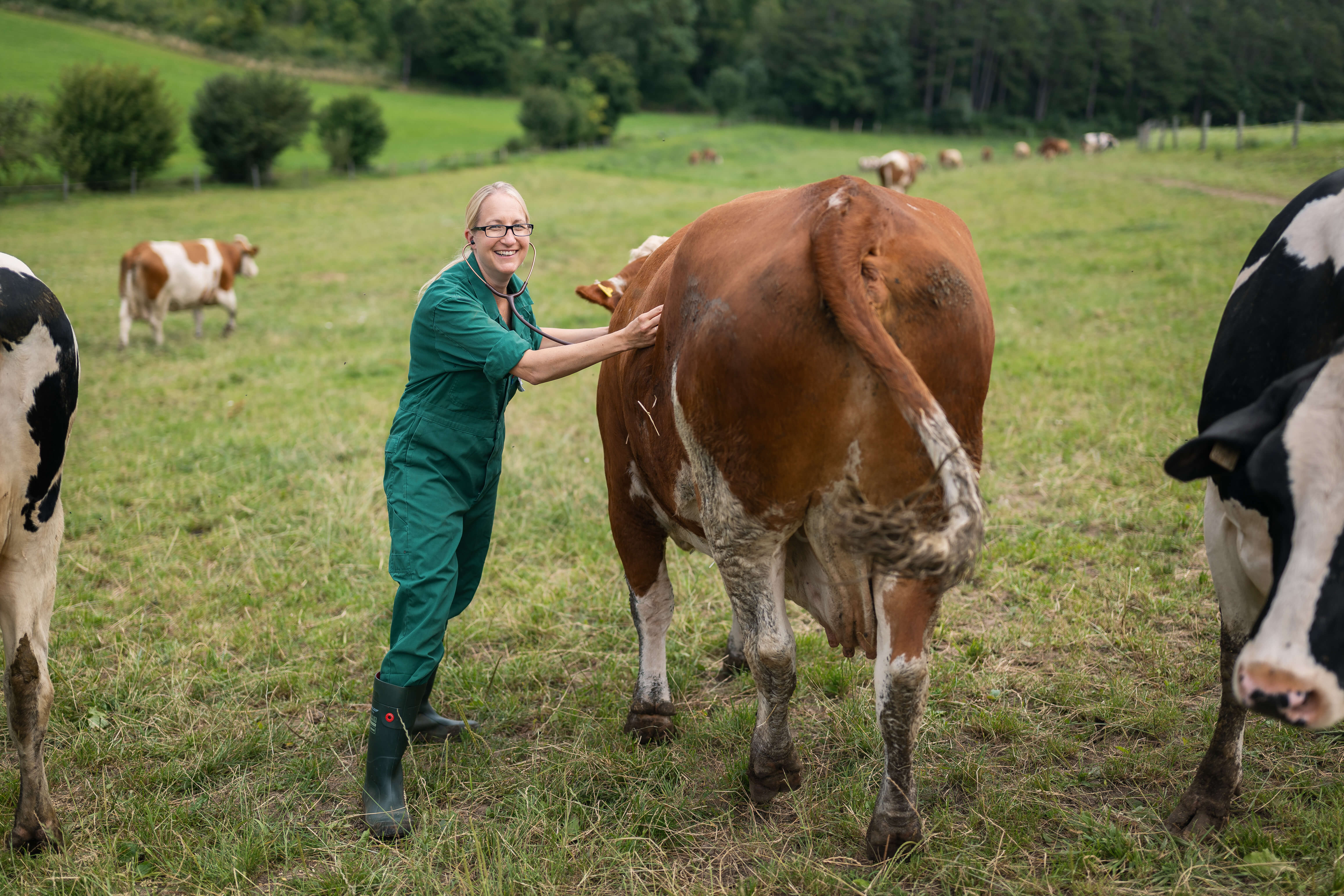 „Viele Erkrankungen unserer Nutztiere sind haltungsbedingt“, erklärt sie. „Wer sie verstehen will, muss das ganze System verstehen – vom Futter bis zur Liegebox.“ Um das Metier von der Pike auf zu lernen, heuerte sie darum nach dem Masterabschluss bei Großbetrieben in Deutschland und den USA an. In Dimensionen von bis zu 2.000 Tieren erwarb sie Grundfertigkeiten in Bestandsbetreuung, Datenanalytik und Tiergesundheitsmanagement, bevor sie sich einem weiteren Produktionssystem zuwandte: der Weidehaltung.
