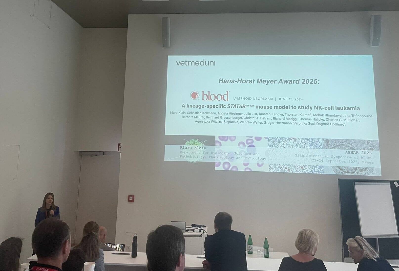 Klara Klein-Eberl was awarded the Hans-Horst-Meyer-Award at APHAR 2025 for her publication "A lineage-specific STAT5BN642H mouse model to study NK-cell leukemia" in the journal Blood.