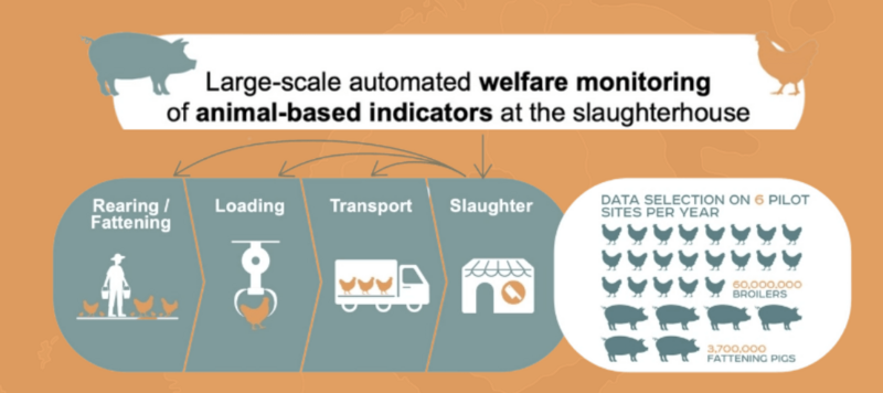 The main objective of aWISH https://www.awish-project.eu/, an EU founded project, is to develop and offer the capacity to evaluate and improve the welfare of meat producing livestock throughout Europe via automated monitoring of animal-based welfare indicators at the slaughterhouse in order to give feedback and advice on best practices to those responsible for the various stages of production (farmer, catching team, transporter, slaughterhouse). This approach will be developed and evaluated in close collaboration with all actors involved, from primary producers up to policy makers and citizens.