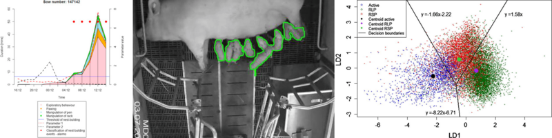 The objective of the PigWatch project, which was funded by the Provincial Government of Lower Austria was tri-fold i.e. to develop an automated monitoring technique for detection of nest-building behaviour in sows, to develop an automated monitoring technique for detection of postural behaviour of sows, both based on ear-tag accelermoter data and finally to monitor the farrowing process by counting piglets in 2D images. On-farm application of the developed system would give the possibility to keep sows unconfined (not in crates) until the end of nest-building period. Thus, crating of individual sows could be limited to the first few days after farrowing when the risk of piglet crushing is high. This would improve welfare of sows, without an increase in piglet mortality and without extra labour demand for observation.