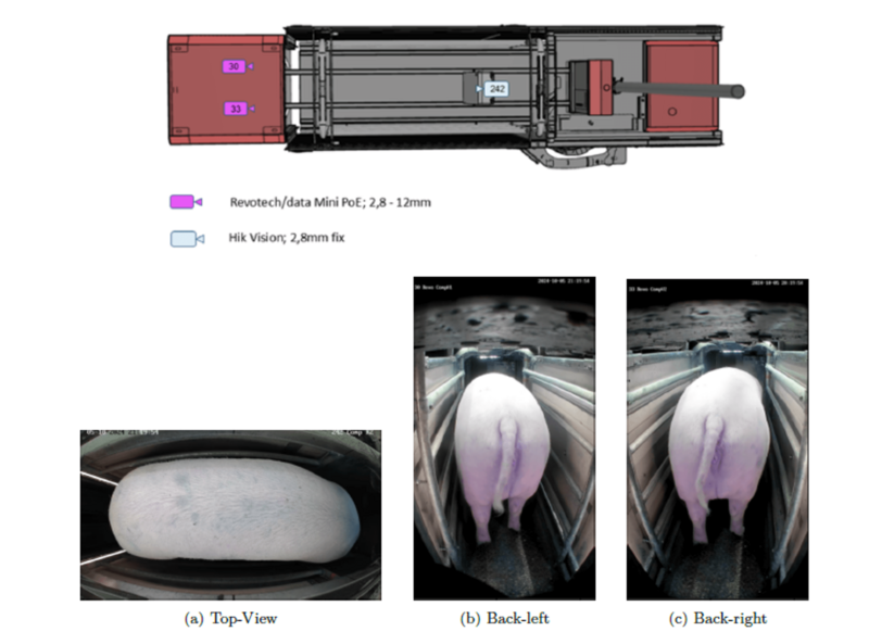 The project funded by Austrian Research Promotion Agency (FFG) and commercial partner Schauer focuses on automated estimation of weight and body measurments of gestation sows to derive Body Condition Score and further enable precision feeding based on individual nutrition needs. Body measurments and weight are estimated for indiviodual animals on the basis of images recorded by several cameras installed in an autoamted feeding station. Indivioduals are identified with an RFID system.