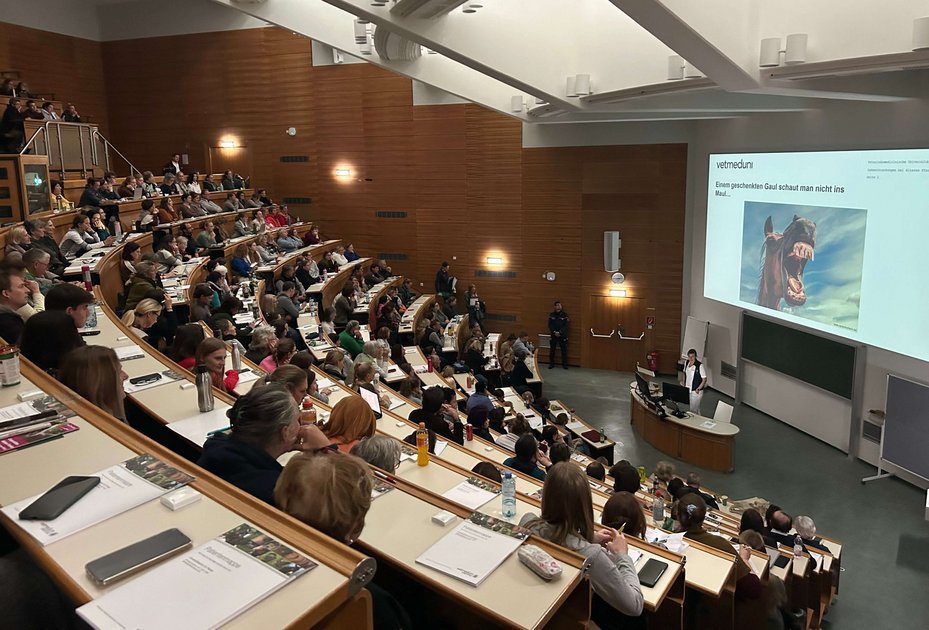 Am Samstag, den 19. Oktober 2024, fand zum mittlerweile elften Mal das Pferde-Symposium an der Veterinärmedizinischen Universität Wien statt. Unter dem Motto „Lahmheit im Griff“ informierten Spezialist:innen des Klinischen Zentrums für Pferde der Vetmeduni u. a. über Lahmheitsdiagnostik, Muskelerkrankungen und häufige chirurgisch-orthopädische Probleme bei Pferden. Der Einladung folgten zahlreiche Pferdeliebhaber:innen, Reiter:innen und Interessierte, die die Gelegenheit nutzten, sich mit den Expert:innen auszutauschen.