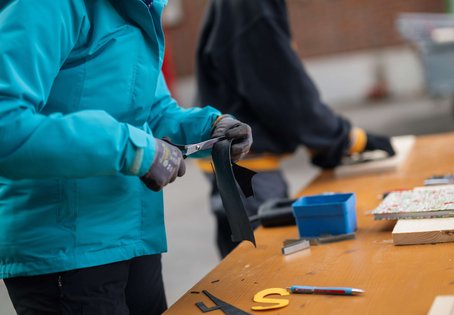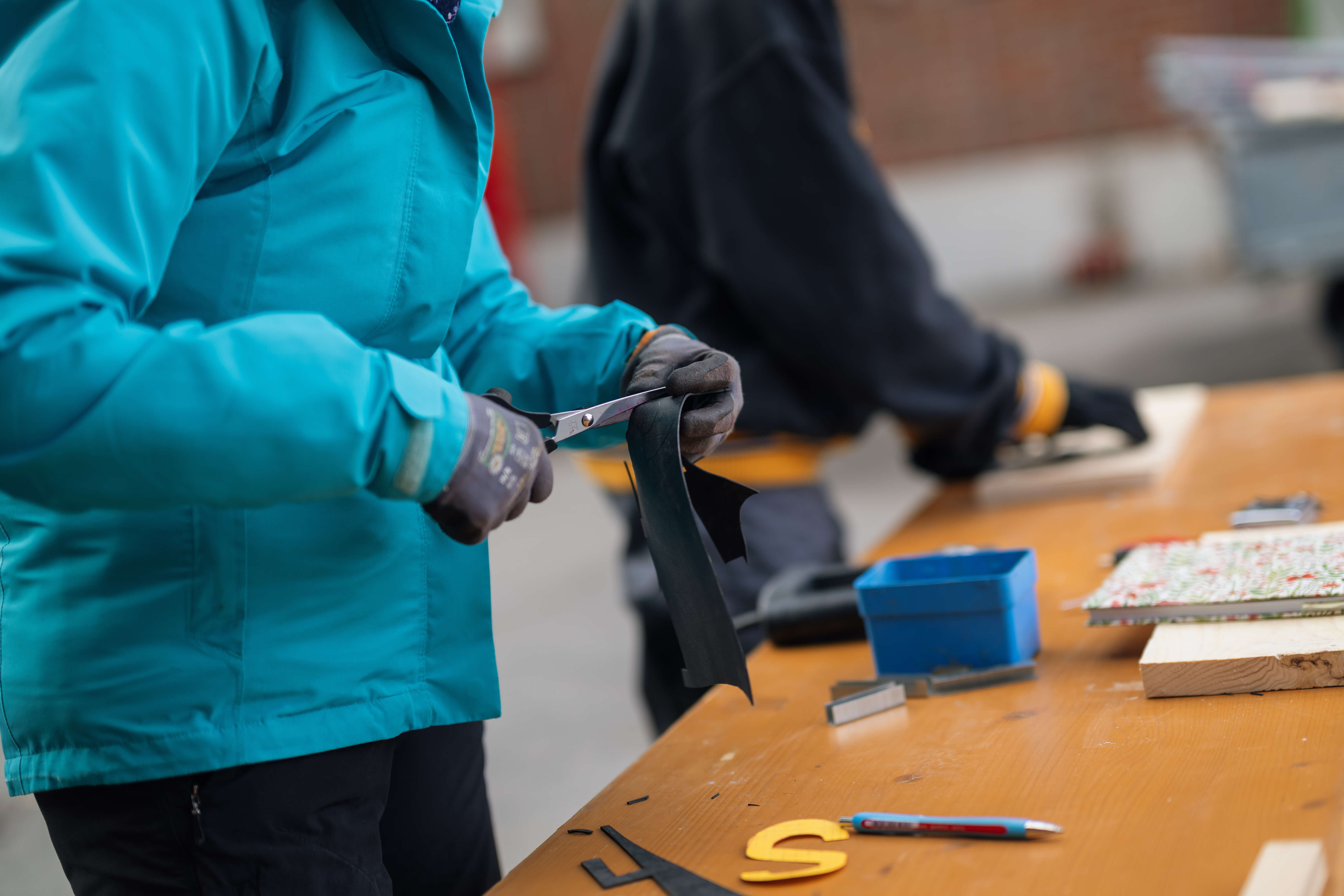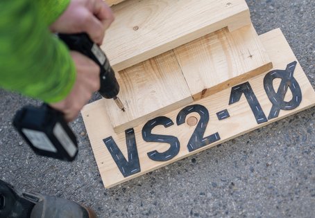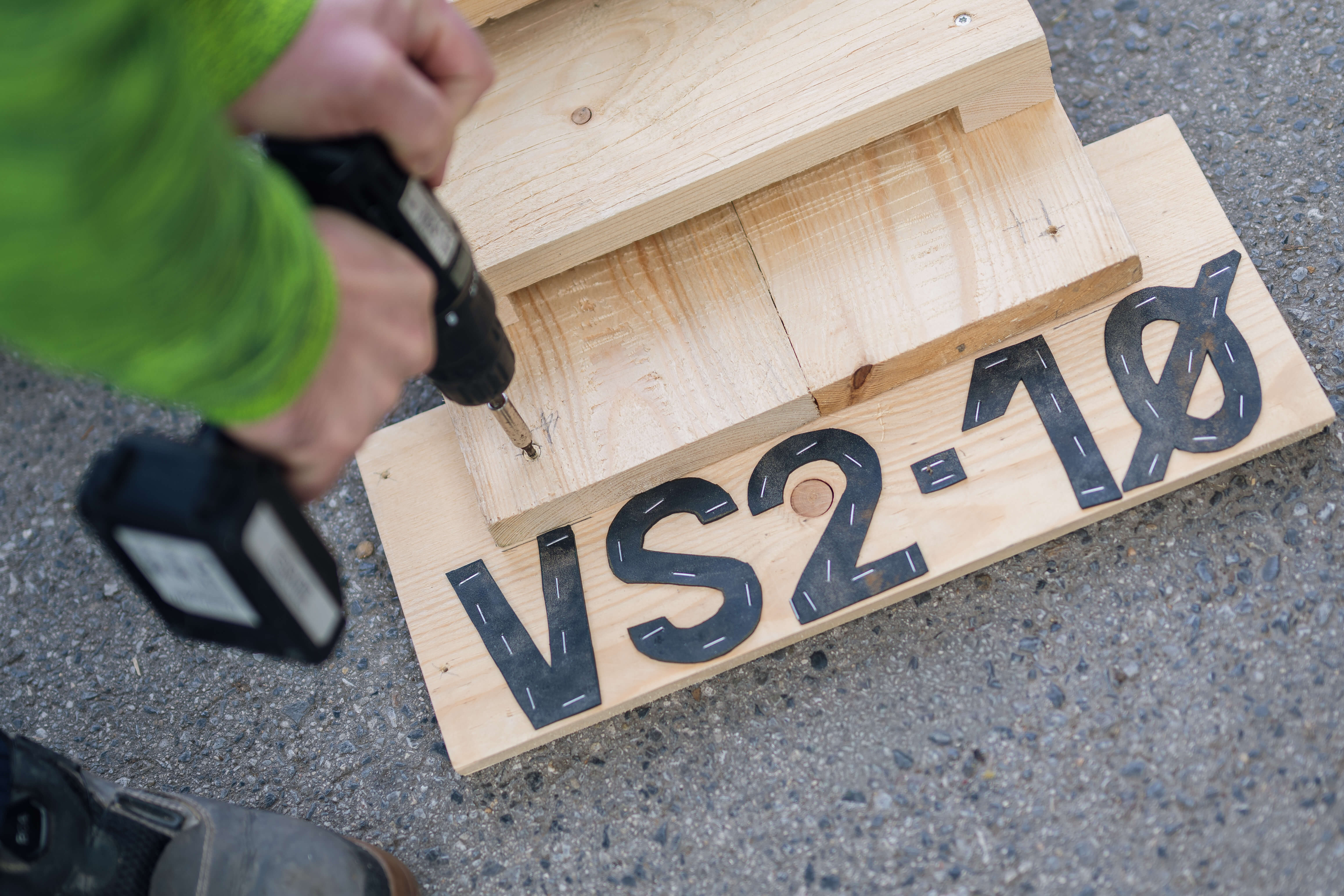 Am 16. November 2025 war es so weit: An der Fassade der Reithalle am Unicampus wurden 16 per Hand und vor Ort gezimmerte hölzerne Ersatzquartiere für Fledermäuse montiert. „Die Wahl des Standorts war dabei eine besondere Herausforderung: Es musste sichergestellt werden, dass die Ein- und Ausflugmöglichkeiten frei sind, keine ansässigen Greifvögel wie Falken in der Nähe leben und die Umgebung möglichst wenig künstliches Licht aufweist“, erklärt Judith Ullmann. Und die Reithalle erwies sich als ideal, da sie mit einer Montagehöhe von über drei Metern, wenig Umgebungsbeleuchtung und der Abwesenheit von Greifvögeln alle Anforderungen erfüllt.