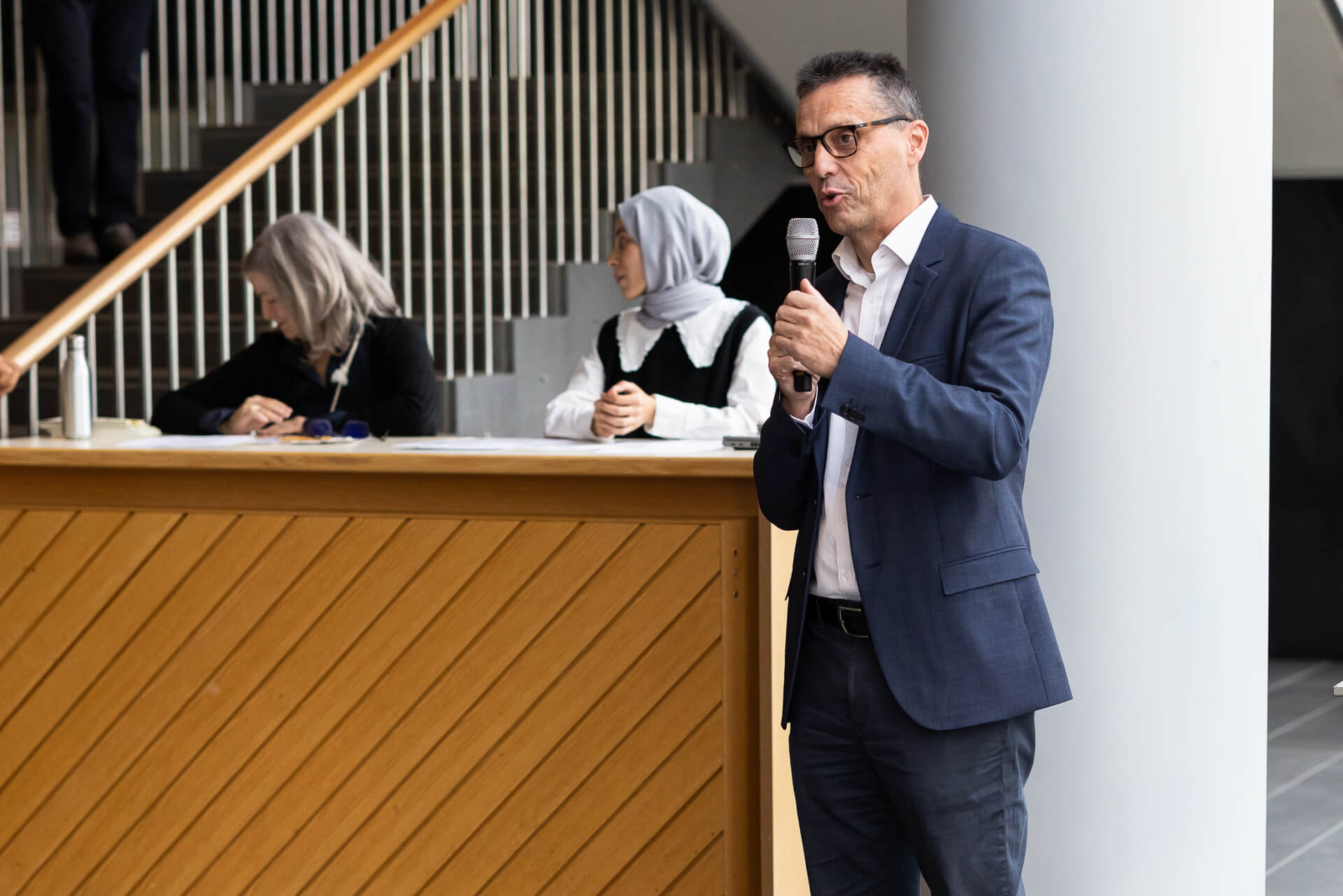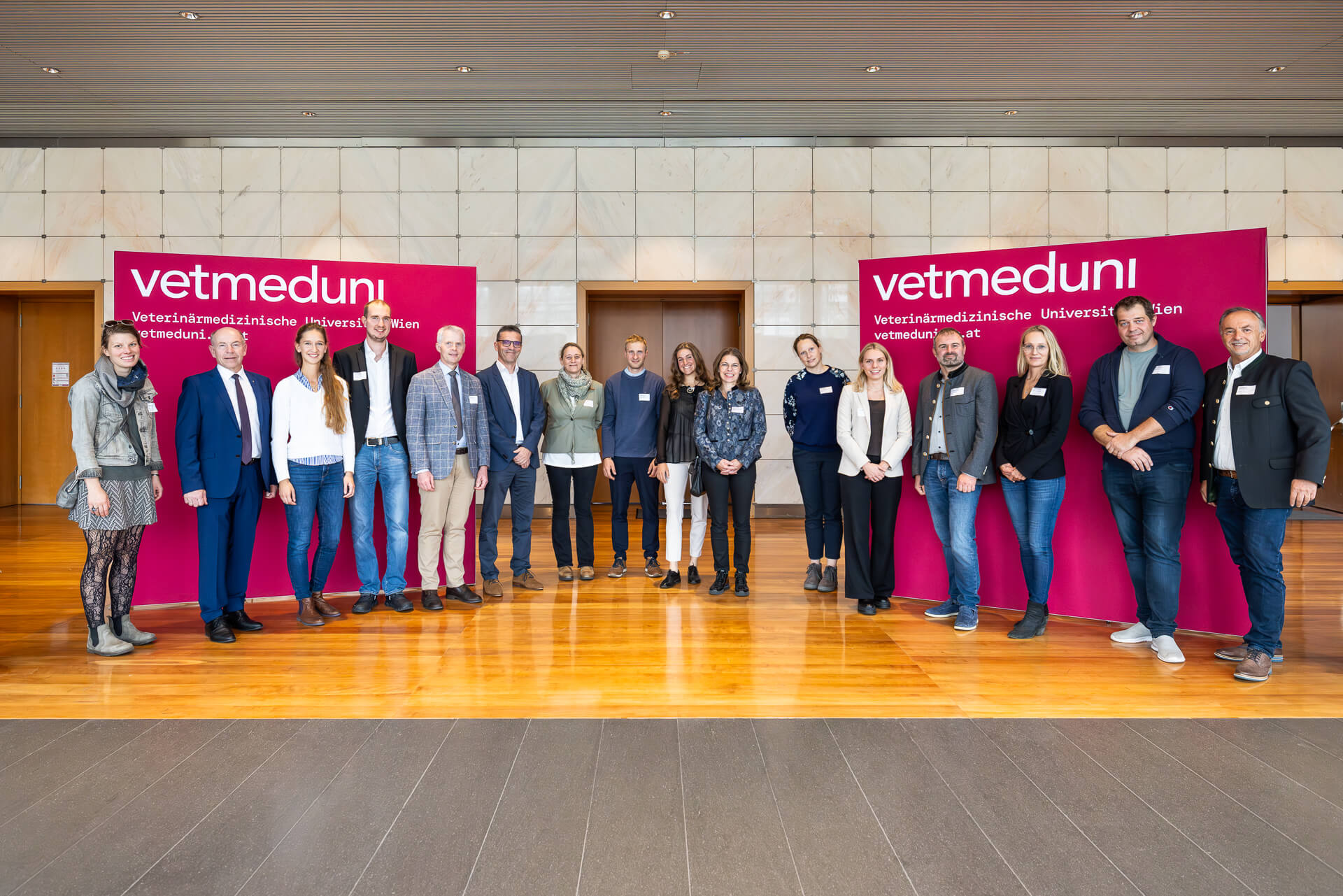 Die offizielle Begrüßung erfolgte durch Rektor Matthias Gauly, die musikalische Begrüßung durch die Blasmusikapelle der Vetmeduni. Aus Oberösterreich kamen (in alphabetischer Reihenfolge) Laura Auböck (Amtstierärztin im Amt der OÖ Landesregierung), Thomas Hain (Landesveterinärdirektor Oberösterreich), Max Hiegelsberger (Präsident des OÖ Landtages), Alexander Karl und Maria Winkler (Tierärzt:innen in verschiedenen Gemischtpraxen). Die Steiermark war vertreten durch Alena Bischof (Tierseuchenbekämpfung, Stmk. Landesregierung), Peter Eckhardt (Landesveterinärdirektor Steiermark), Wolfgang Kneifel (Leiter Tierklinik Thalerhof), Doris Lassacher, Sandra Pollinger (Fleischhygiene und Tierarzneimittel, Stmk. Landesregierung), Richard Schmid (politischer Referent Veterinärwesen) und Robert Wolf (Geschäftsführer Steirischer Tiergesundheitsdienst). Die längste Anreise hatten die Expert:innen aus Südtirol: Benjamin Arnold (Großtierpraktiker und Vorstandsmitglied der Tierärztekammer), Serena Carlin (Landesveterinärdirektion), Marta Pirola (Großtierpraktikerin und Betriebstierärztin) sowie Ramona Stecher (Amtstierärztin).
