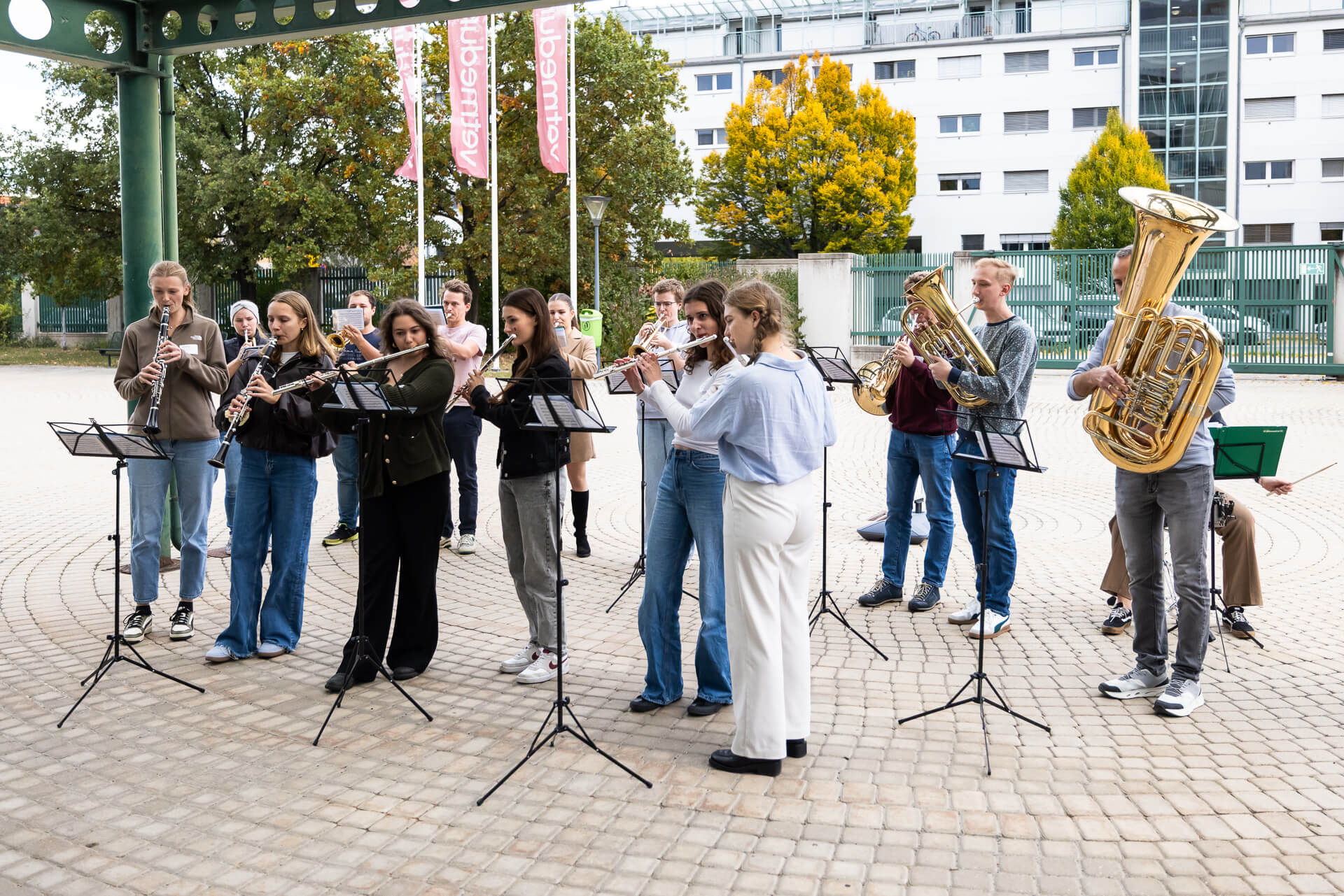 Am 23. Oktober 2025 trafen sich erstmals über 70 Studierende mit ihren zukünftigen Kolleg:innen aus gleich drei Regionen, nämlich Oberösterreich, Steiermark und Südtirol. Besonders erfreulich: Einige der regionalen Expert:innen haben ihren aktuellen Job bei einem der letzten Vernetzungstreffen gefunden! Und eine weitere Premiere: Die Blasmusikkapelle der Vetmeduni begrüßte die Gäste mit einem kurzen Ständchen.