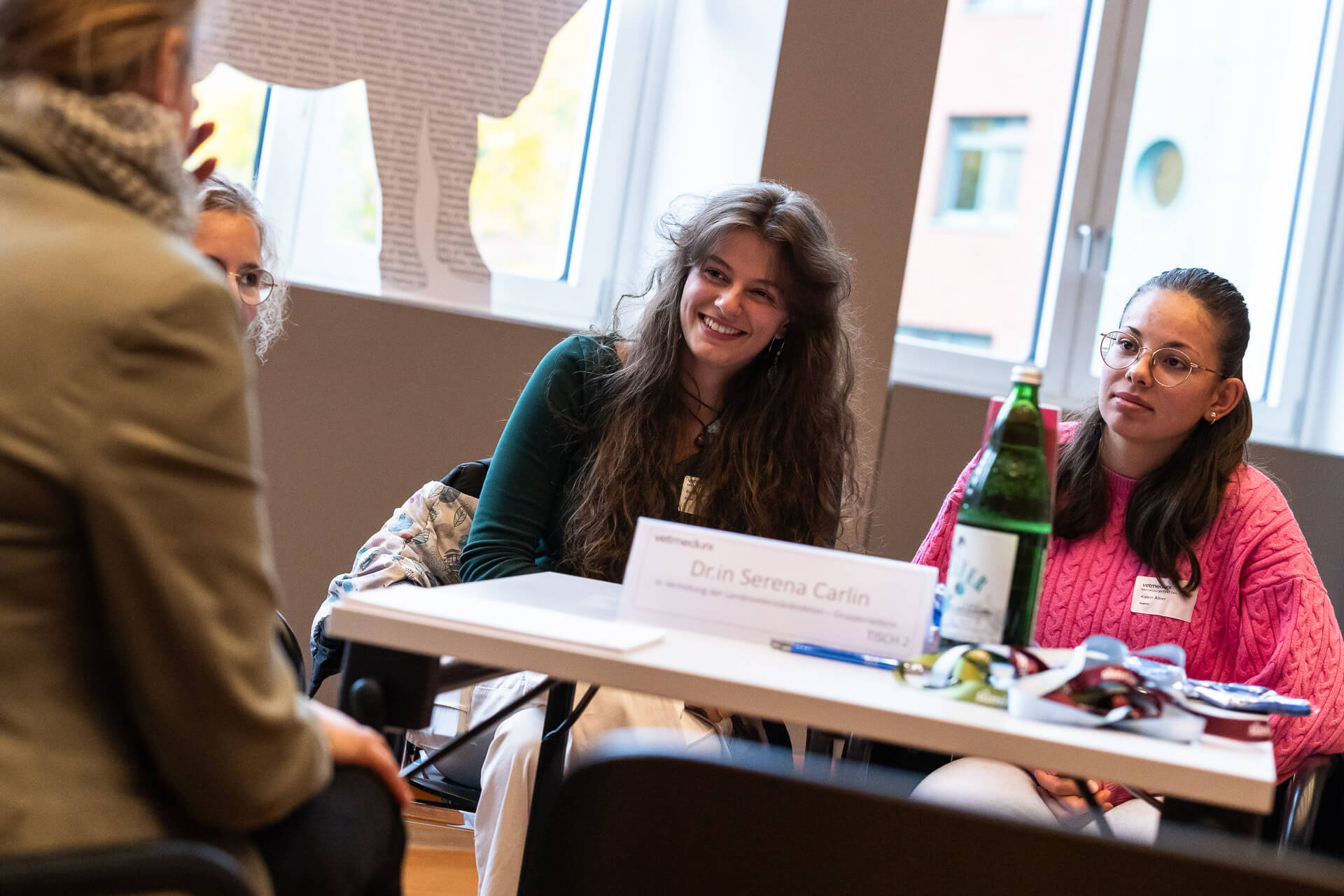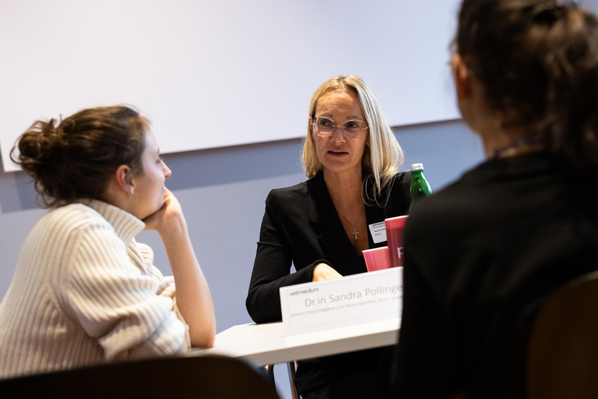 Mit großem Erfolg fanden in den letzten Jahren regelmäßig Vernetzungstreffen an der Vetmeduni statt. Viele Studierende nutzten die Möglichkeit, sich in entspannter Atmosphäre mit Veterinärmediziner:innen zu den unterschiedlichen Berufsfeldern, dem Berufsalltag, Praktika und Karrierechancen im eigenen Bundesland auszutauschen und haben über dieses Vernetzungsformat ihren Einstieg ins Berufsleben gefunden. Heuer im Herbst gab es erstmals ein Vernetzungstreffen mit gleich drei Regionen, nämlich Oberösterreich, Steiermark und Südtirol. Unter dem Titel „I wü wieda ham“ hatten Studierende nicht nur die Möglichkeit, sich mit Expert:innen aus ihrer jeweiligen Heimat zu vernetzen und sich dabei im bewährten Speeddating-Format auch wertvolle Tipps für den Berufseinstieg zu holen. Sie konnten sich nach dem „offiziellen“ Vernetzungstreffen an der Bar der Hochschüler:innenschaft auch noch über die Regionengrenzen hinweg austauschen und vernetzen.