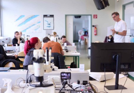 Die Gewinnung und Kryokonservierung von Maus-Spermien und -Embryonen erfordert eine spezielle Ausbildung. Neben theoretischen Einheiten standen vor allem praktische Übungen im Fokus: von der Archivierung und Revitalisierung von Embryonen und Keimzellen über die in vitro Fertilisation bis hin zum Embryotransfer.