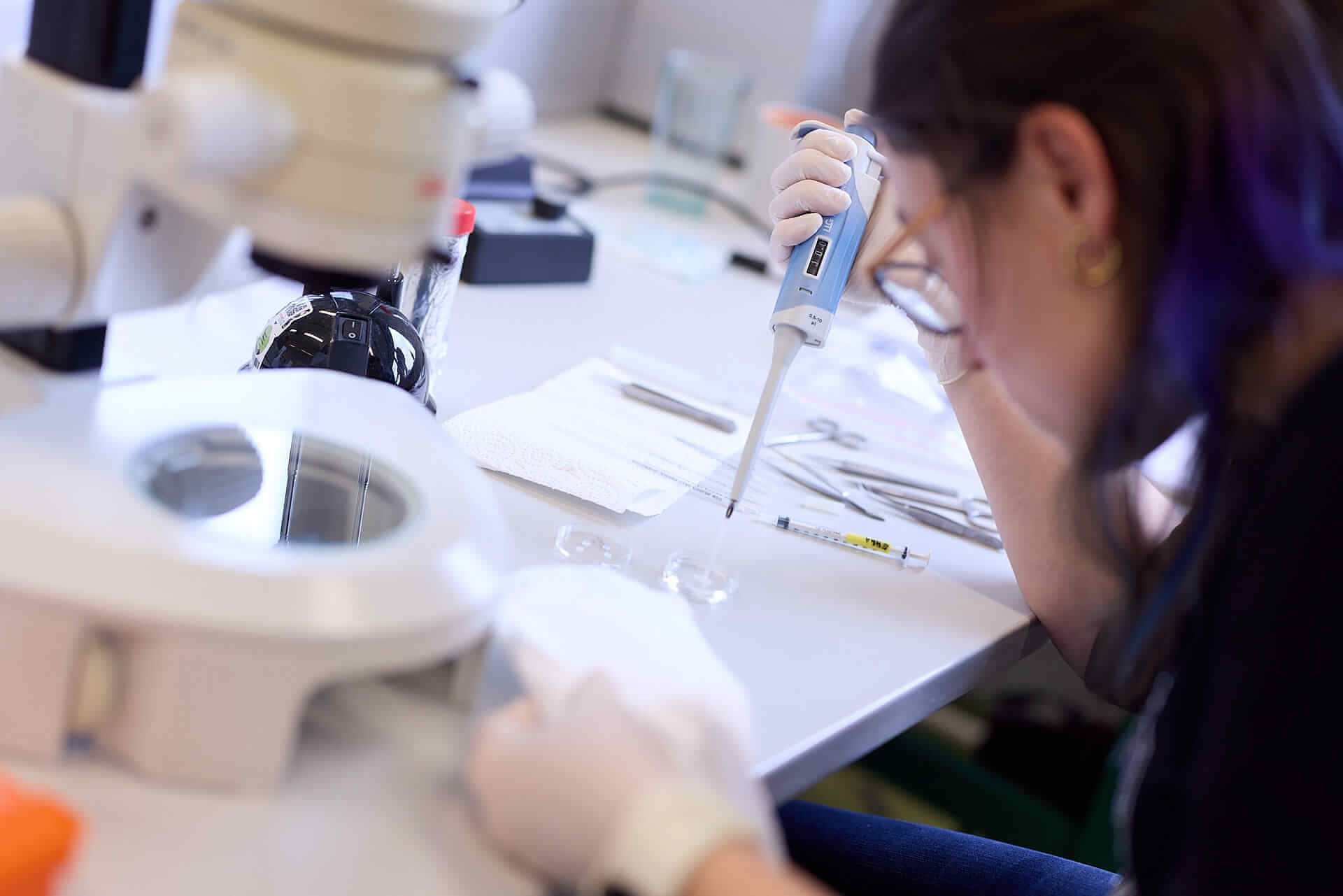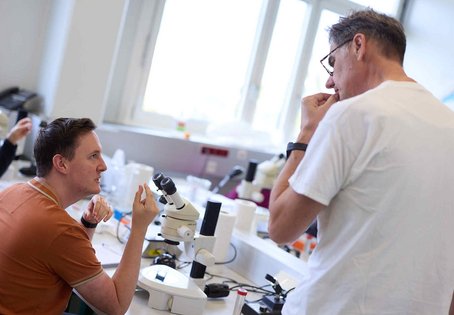 Die Kryokonservierung und der Embryotransfer spielen eine zentrale Rolle bei der Archivierung von genetisch veränderten Mauslinien, die insbesondere im Rahmen des Europäischen Mausmutantenarchivs (EMMA) an der Vetmeduni gesammelt werden. Über EMMA können Forscher:innen weltweit Mausstämme, die für die biomedizinische Forschung von Bedeutung sind, kostenlos archivieren lassen und gegen eine Gebühr online bestellen. Der österreichische EMMA-Knoten befindet sich am Institut für In-vivo & In-Vitro-Modelle (Vorstand: Maik Dahlhoff). Um den korrekten Umgang mit tiefgefrorenen Proben im Laboralltag zu gewährleisten, bietet das Institut unter der Anleitung von EMMA Archivmanager Auke Boersma und Thomas Kolbe regelmäßig spezielle Trainingskurse an. Ziel des Kurses ist es, das Know-how über Assistierte Reproduktion, Kryokonservierung und Embryotransfer bei Labormäusen zu vermitteln und die Teilnehmer:innen so in die Lage zu versetzen, diese Techniken eigenständig anzuwenden.