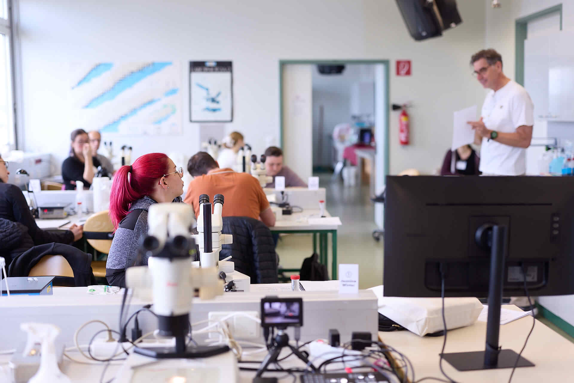 Der Kurs für Kryokonservierung und Embryotransfer bei Labormäusen fand heuer vom 29. September bis 03. Oktober 2025 am Zentrum für Biologische Wissenschaften der Vetmeduni statt. Sieben Teilnehmer:innen aus Österreich, Deutschland und den Vereinigten Staaten vertieften ihre Kenntnisse in der Archivierung wertvoller Mauslinien und trainierten ihre praktischen Fähigkeiten.