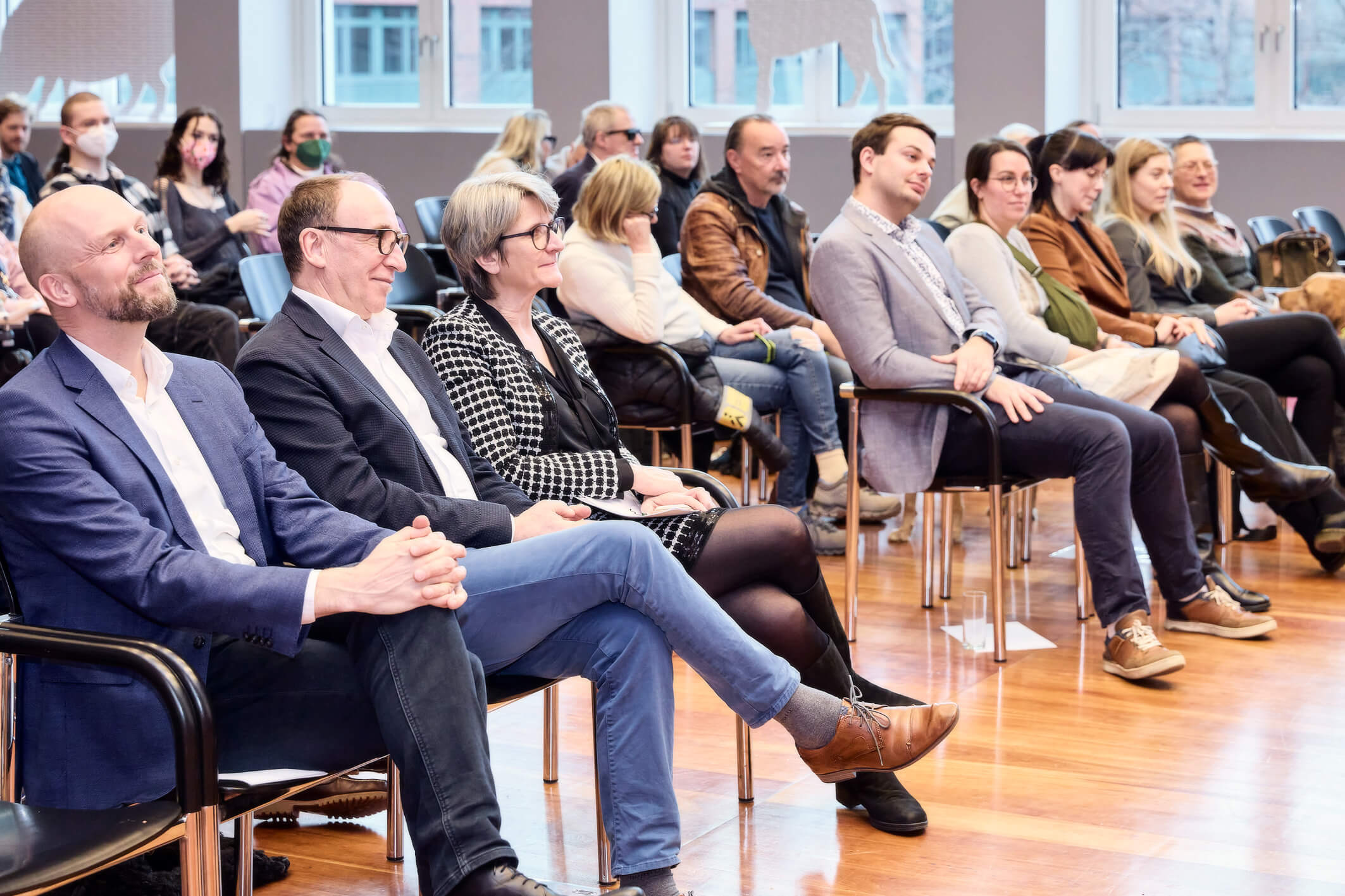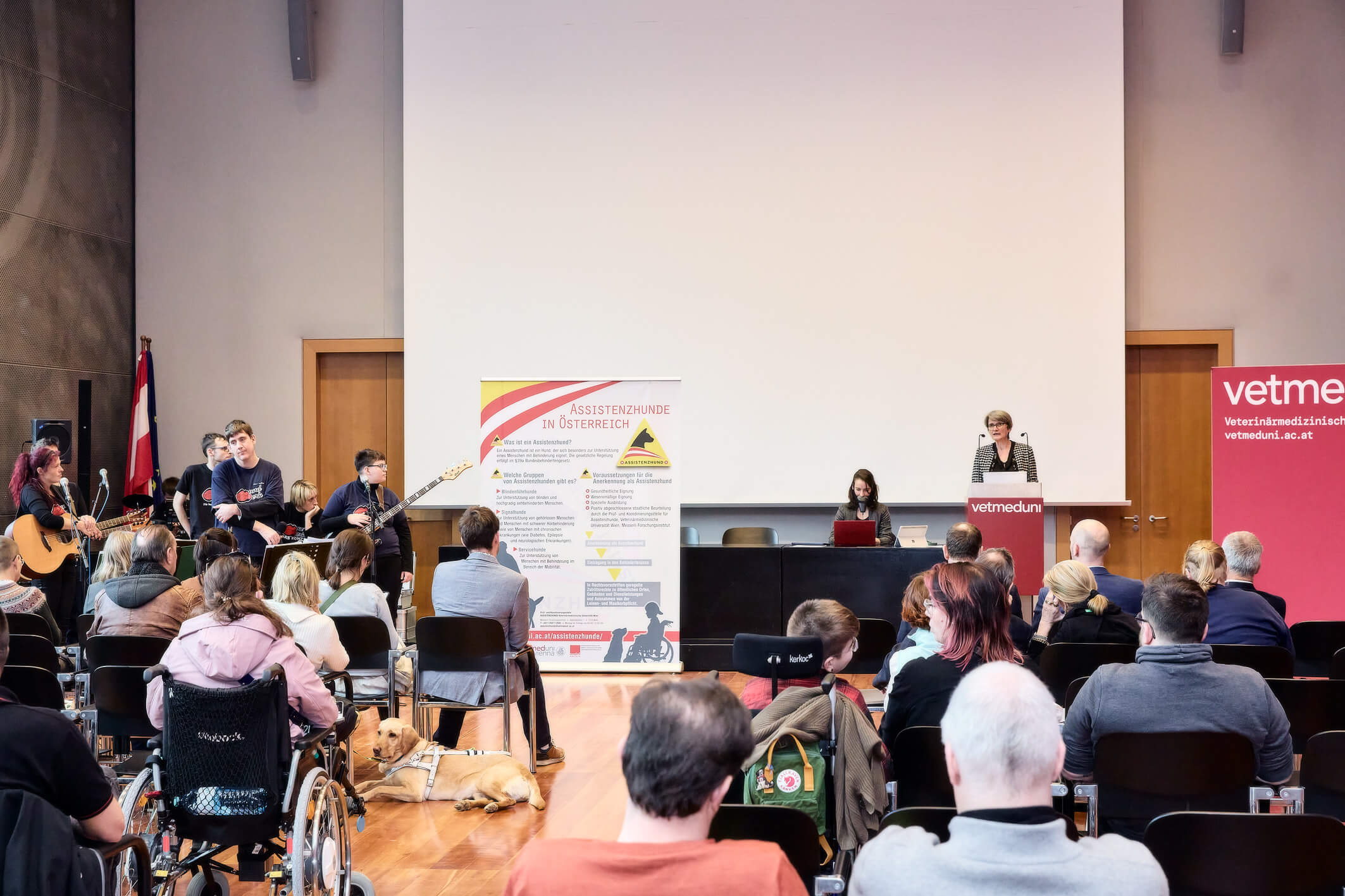 Am 26. Februar 2024 fand im Festsaal der Vetmeduni ein Empfang für Assistenzhundehalter:innen mit Bundesminister Johannes Rauch statt. 35 Halter:innen von Assistenzhunden erhielten dabei ihre Zertifizierung.