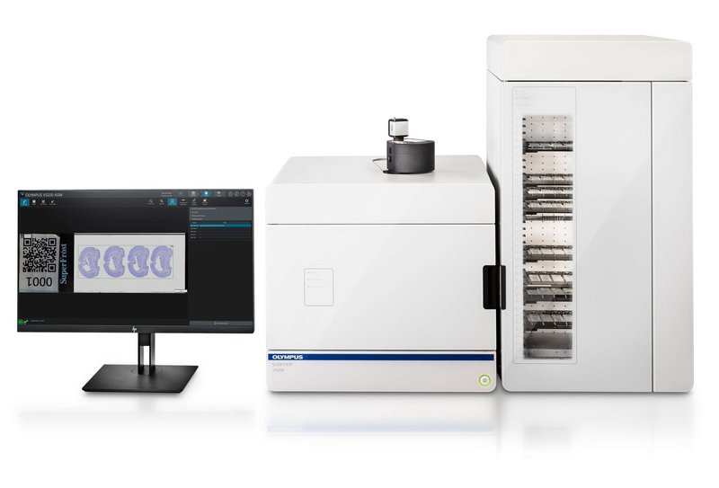 Der Slidescanner VS200 ist für hohen Durchsatz konzipiert und kann bis zu 90 Objektträger in einer Sitzung digitalisieren. Individuell einsetzbar bietet er Optionen für Hellfeld-, Fluoreszenz-, Phasenkontrast-, Dunkelfeld- und Polarisationsaufnahmen. Übersichtsscans mit einem 2x Objektiv bis hin zu Detailscans mit einem 60x Ölobjektiv mit automatischem Öldispenser sind möglich.